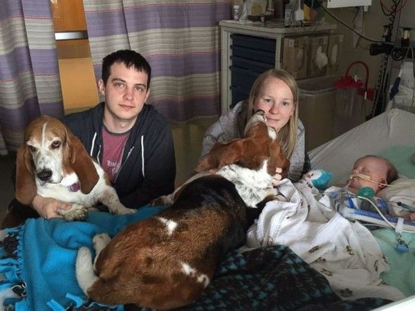 Après que les médecins aient informé ses parents de leur diagnostic très négatif, les deux bassets hounds de la famille ont refusé de quitter le chevet d’un enfant malade, qui n’allait pas survivre à son état.